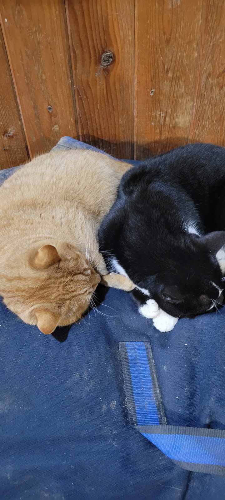 Otis and Christina (Chris) are the two best patrol kitties in Pickaway County. No bird or mouse is safe on the premises with them on duty. When they need a [much deserved] break, you can find them lounging atop tack boxes, or sunning themselves on the porch swing.